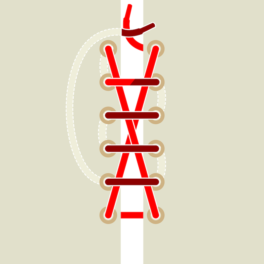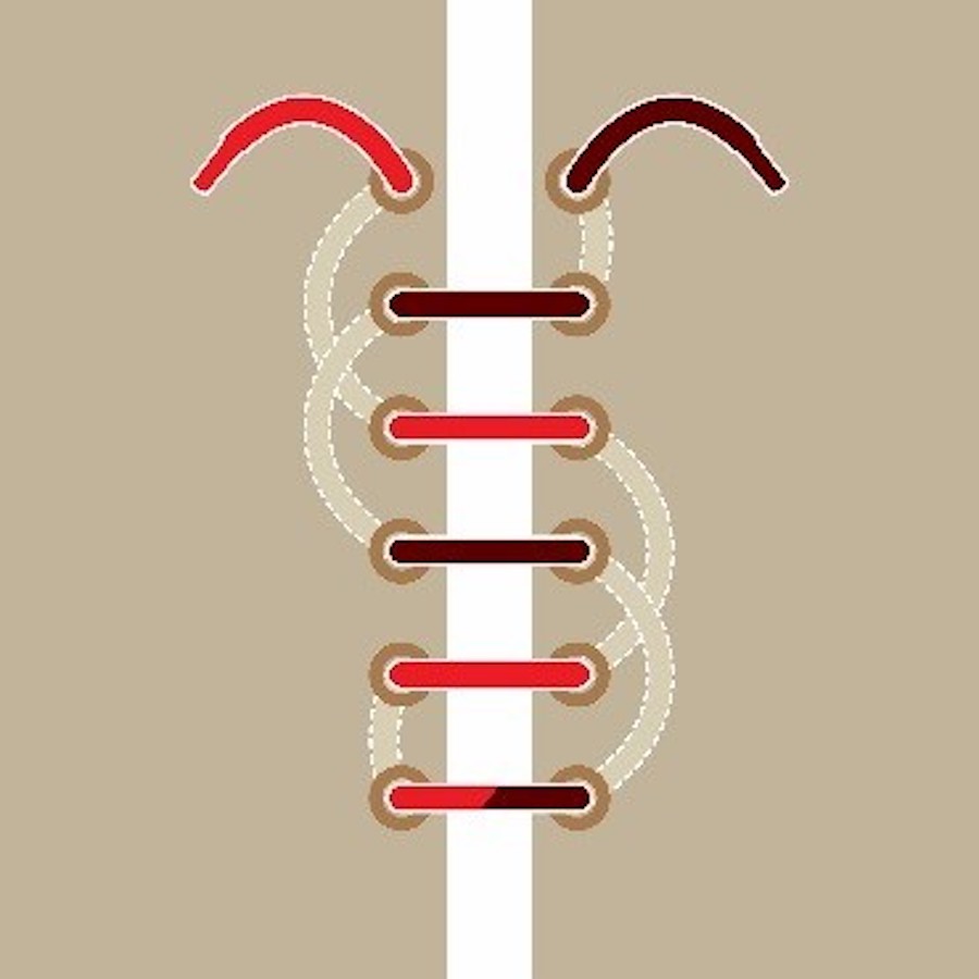 Là lý tưởng cho những đôi giày có khoen nhỏ hoặc dây giày mập. Nó rất dễ dàng (đặc biệt là so với kiểu viền bậc thang được đề cập ở trên) và hơi lỏng hơn một chút so với các kiểu viền khác. Đây có thể là một trong những cách buộc dây giày MLB Boston mà bạn có thể thử dễ dàng