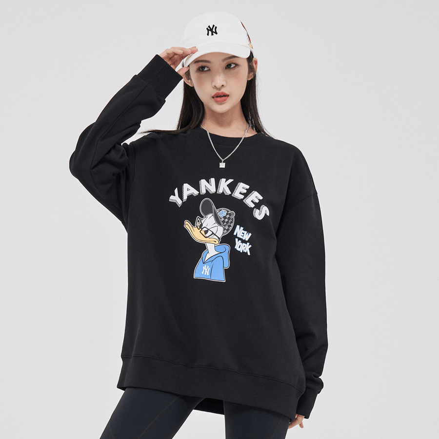 Là một trong những Hãng thời trang quá quen thuộc trong cộng đồng giới trẻ hiện nay, MLB luôn đi kèm với hình ảnh, kí hiệu của các đội bóng chày nổi tiếng như NY, B, LA,… được tạo hình khỏe khoắn, trẻ trung và rất năng động. Lấy cảm hứng từ bô môn thể thao hết sức nổi tiếng được thể hiện thông qua các sản phẩm thời trang, làm nên sự độc đáo, khác biệt chỉ riêng MLB. Áo sweatshirt MLB x Disney Donald Duck Front Print Overfit New York Yankees Black nằm trong bộ sưu tập đầy màu sắc và đa dạng của mẫu áo sweatshirt MLB