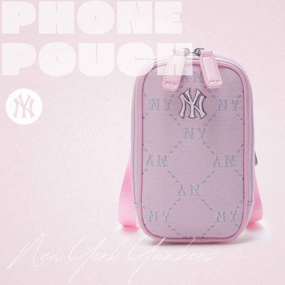 Túi MLB Korea Diamond Monogram Phone Pouch New York Yankees Pink